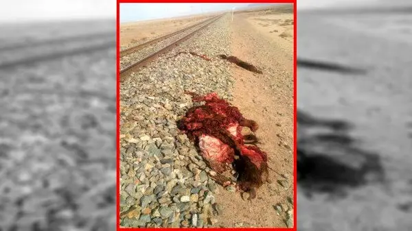 عکس وحشتناک برخورد شتر با قطار کرمان - مشهد