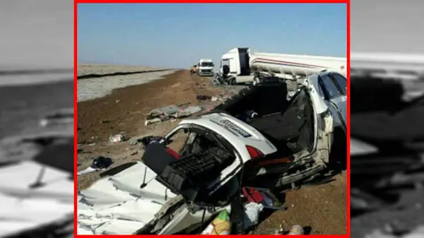 مچاله شدن ماشین لاکچری در تصادف با تانکر سوخت/ حمام خون در جاده طبس ! + عکس