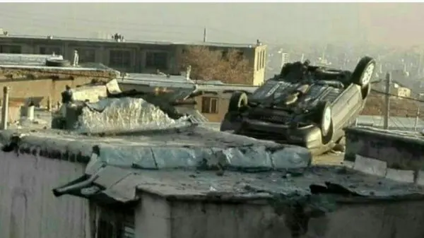 پرواز خودروی زانتیا و فرود آمدن آن روی سقف یک خانه در محله چمن+ عکس عجیب