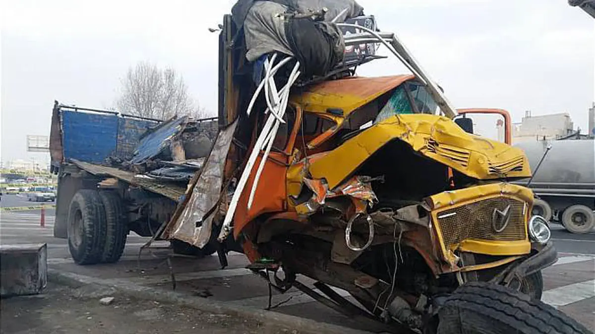 عجیب ترین تصادف در تهران / کامیون بنز مچاله شد !+ عکس های باورنکردنی