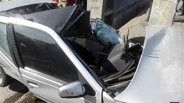 برخورد شدید خودروی پژو با تیر جراغ برق خاوران +تصاویر
