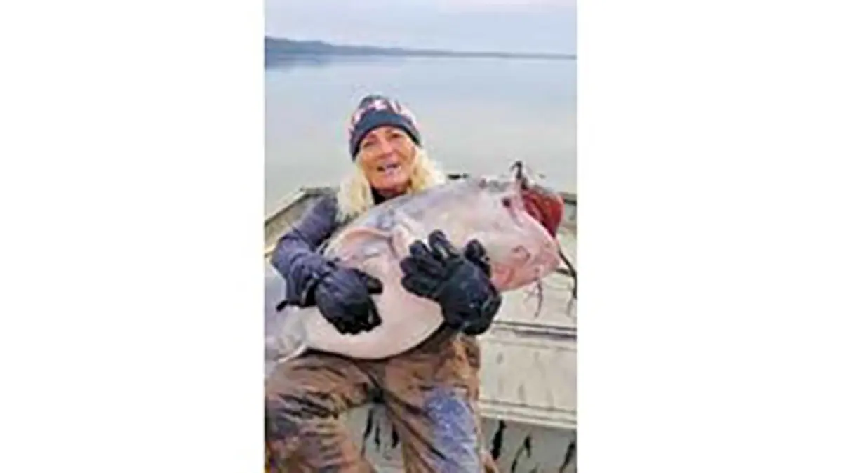حوادث رکنا: زن امریکایی موفق به صید ماهی غول پیکری به وزن 88 پوند – 40 کیلوگرم- در رودخانه تنسی شد.