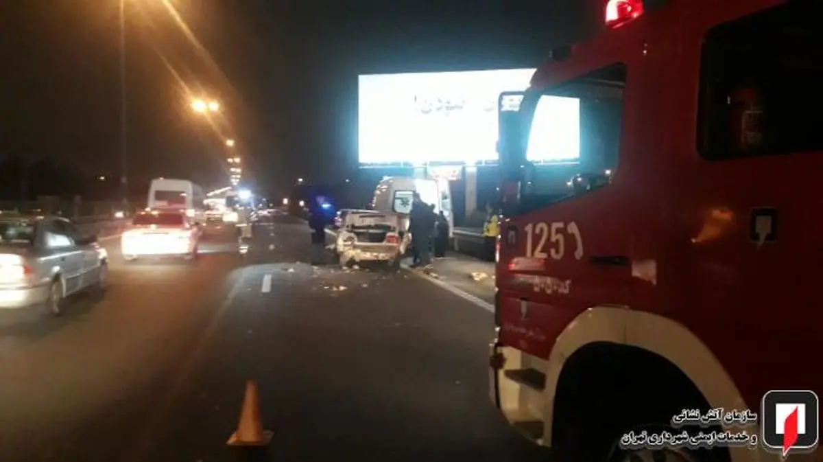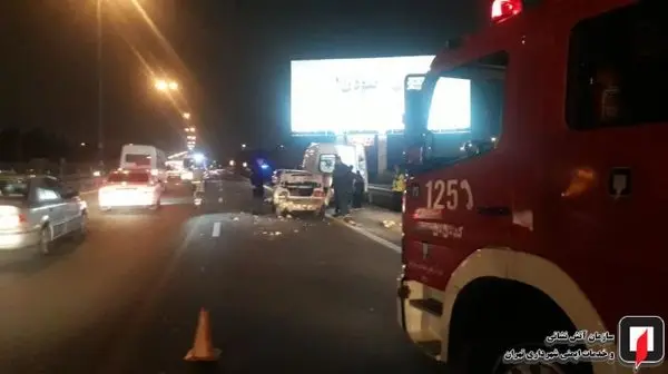 به گزارش گروه حوادث رکنا، وقوع این حادثه رانندگی ساعت 19:19 دقیقه شب گذشته توسط شهروندان به سامانه 125 اطلاع رسانی شد که بی درنگ با هماهنگی ستاد فرماندهی آتش نشانی تهران، نیروهای آتش نشانی ایستگاه 50 به محل حادثه در مسیرجنوب به شمال بزرگراه خلیج فارس، بعد از عوارضی، ورودی بزرگراه علامه عسکری رهسپار شدند.