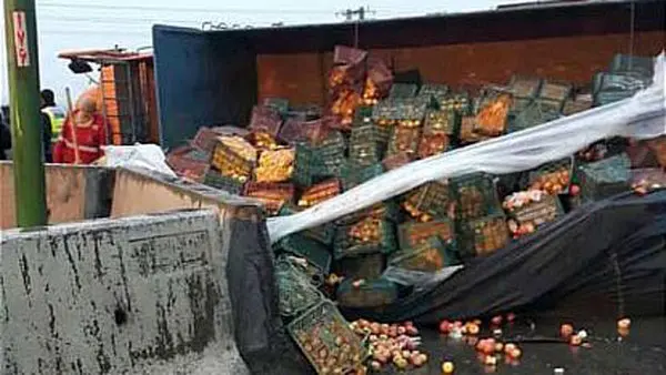 واژگونی کامیون حامل میوه در جاده ی خاوران + عکس