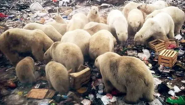 قطبی در اثر تغییرات اقلیمی بیش از پیش مجبور به ورود به خشکی (از آبهای قبلاً پوشیده از یخ) برای یافتن غذا هستند.