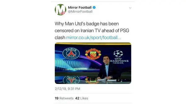 به گزارش گروه ترجمه رکنا، صفحه رسمی توئیتر نشریه میرور انگلیس نسبت به اقدام صداوسیما واکنش نشان داده و نوشته: چرا لوگوی منچستر در تلویزیون ایران سانسور شد؟برای ورود به کانال تلگرام ما کلیک کنید.