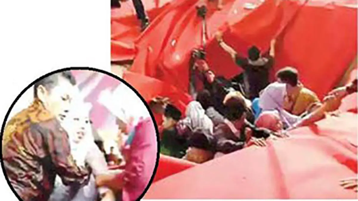 به گزارش میرر، این حادثه در یک مراسم عروسی در شهر جاکارتا اندونزی رخ داد.تصاویر و فیلمهای منتشر شده از این حادثه نشان میدهد که بخشی از مراسم عروسی بالای سکویی اجرا میشد که روی یک کانال آب نصب شده بود اما ناگهان سکو شکست و عروس و داماد و چند تن از میهمانان درون آبهای آلوده سقوط کردند.برای ورود به کانال تلگرام ما کلیک کنید.