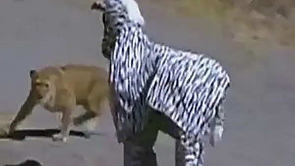 2 مرد با لباس گورخر به قلمروی حیوانات رفتند اما شیرها از آنها پذیرایی کردند+عکس