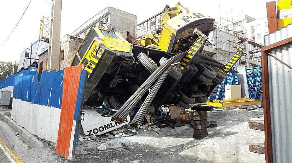 حوادث رکنا: سقوط جرثقیل 60 تنی در یک مجتمع مسکونی در حال ساخت در غرب تهران، مصدومیت راننده آن را در پی داشت.