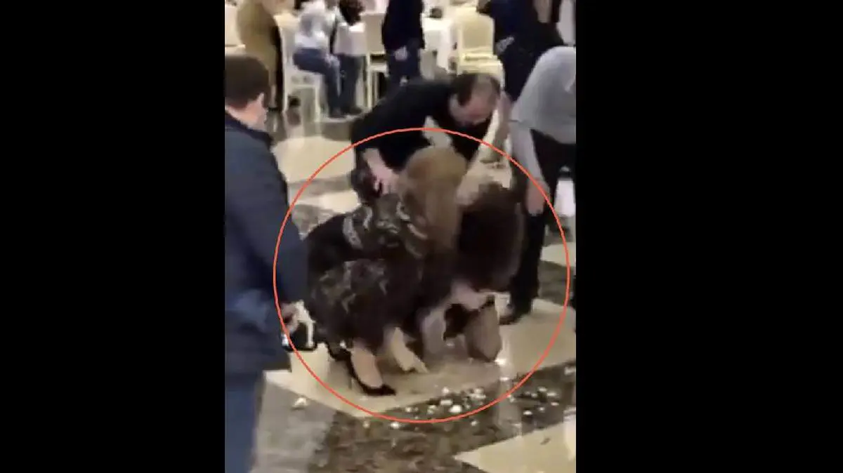 گلبرگ های دسته گل روی زمین پخش شده بودند و بعد از جنگ، آن دو به یکدیگر خیره شدند و خانواده و دوستانشان سعی کردند که آنها را از هم جدا کنند و مهمانان به برنده تبریک گفتند، در حالی که تیم بازنده ظاهراً ناراضی و ناراحت بودند. برای ورود به کانال تلگرام ما کلیک کنید.
