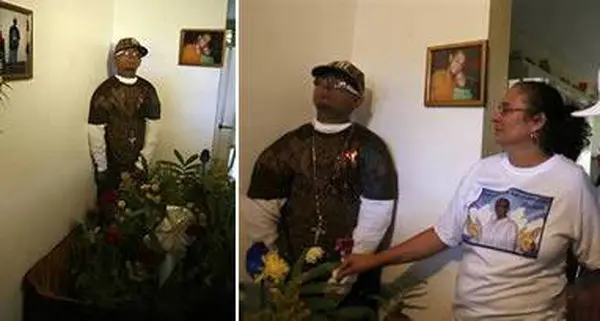 مادر آنجل از مسئولین غسال خانه خواسته بود تا آخرین آرزوی پسرش را بر آورده کنند. به این ترتیب آن ها برای اجرای وصیت عجیب این جوان، او را به حالت مومیایی در آوردند تا بتواند ایستاده در طول مراسم تشییع جنازه در کنار تابوت خود قرار بگیرد و مهمانان با او وداع کنندو پس از مراسم تشییع جنازه وی را در تابوت قرار دادند و دفن کردند.برای ورود به کانال تلگرام ما کلیک کنید.