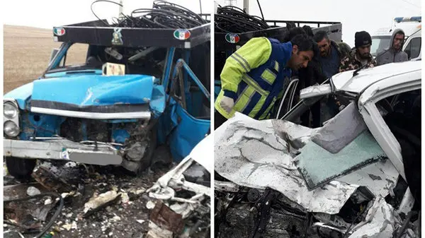 مچاله شدن پراید و نیسان بر اثر برخورد با یکدیگر +عکس