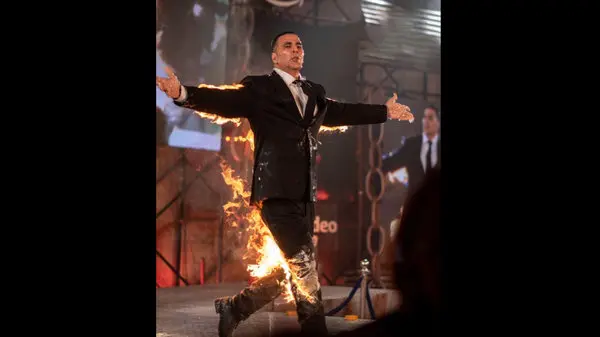 آکشی کومار در حالی با به آتش کشیدن خود روی صحنه رفته که برای جلوگیری از رسیدن آتش به بدنش با یک ماده ضد آتش پوست بدن خود را پوشانده بود. او همچنین زیر کت و شلوارش لباس نسوز پوشید.