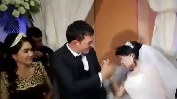 به گزارش گروه ترجمه رکنا، داماد تاجیکی جلوی مهمانان به عروس ، به این دلیل که هنگام تعارف زدن کیک با او شوخی کرده بود، سیلی زد.
