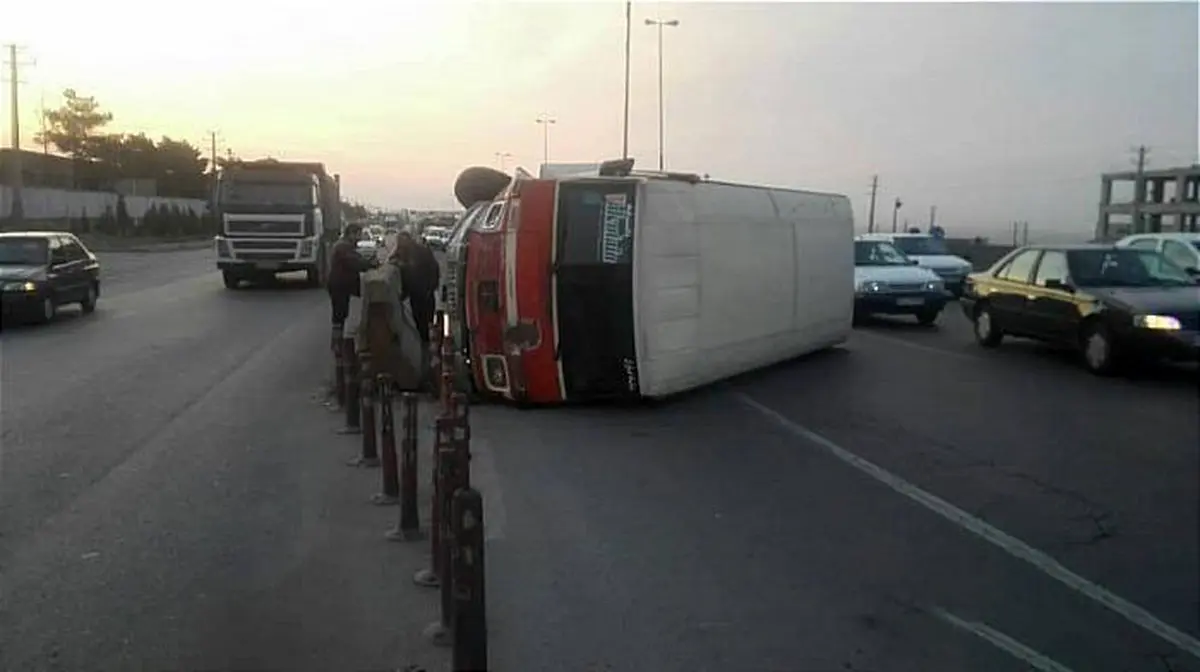 واژگونی مینی بوس در جاده ی خاوران +تصاویر