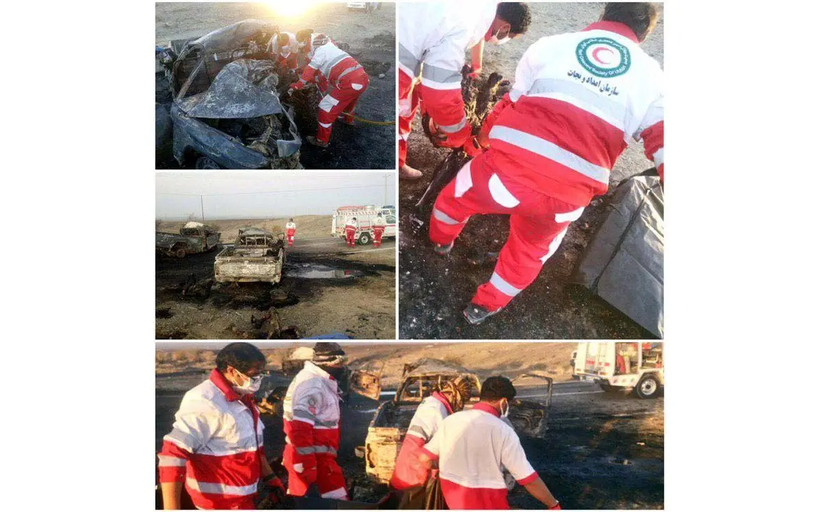 مدیرعامل هلال احمر سیستان و بلوچستان ادامه داد: در تصادف یک دستگاه تویوتا دو هزار حامل سوخت و یک دستگاه تویوتا هزار و ۶۰۰ حامل اتباع بیگانه در مسیر سراوان_کلپورگان_ اسفندک در ساعت ۲:۴۵ دقیقه بامداد امروز ۱۳ نفر در آتش سوختند و جان خود را از دست دادند.