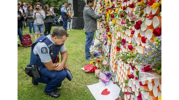 پلیس نیوزیلند در حال خواندن پیام های تسلیت + عکس