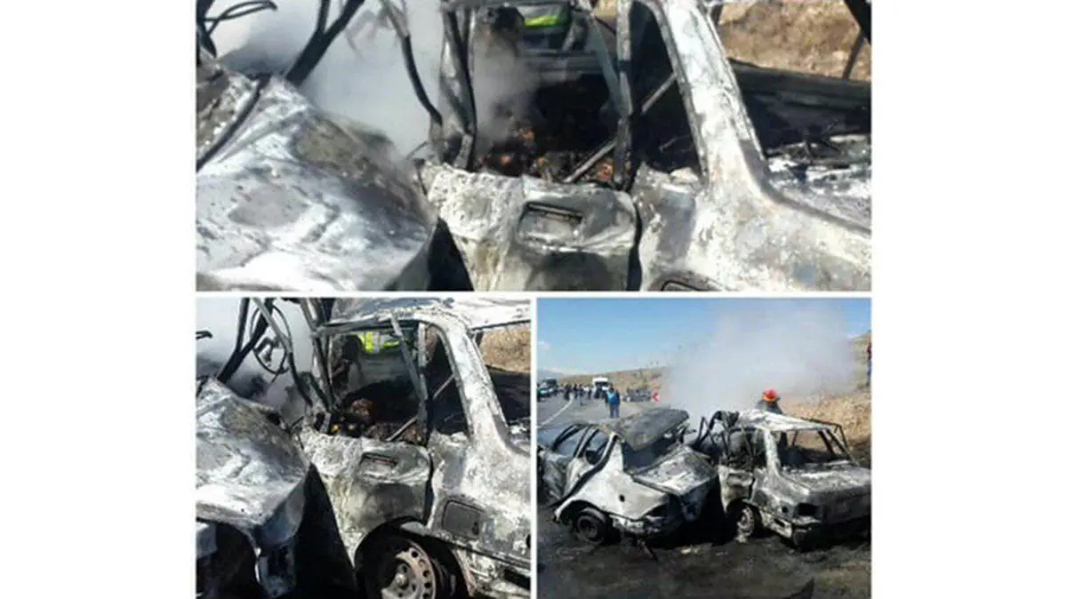 ۷ مهمان نوروز در تصادف پراید و سمند زنده زنده سوختند / در جاده خوی رخ داد + عکس 16+