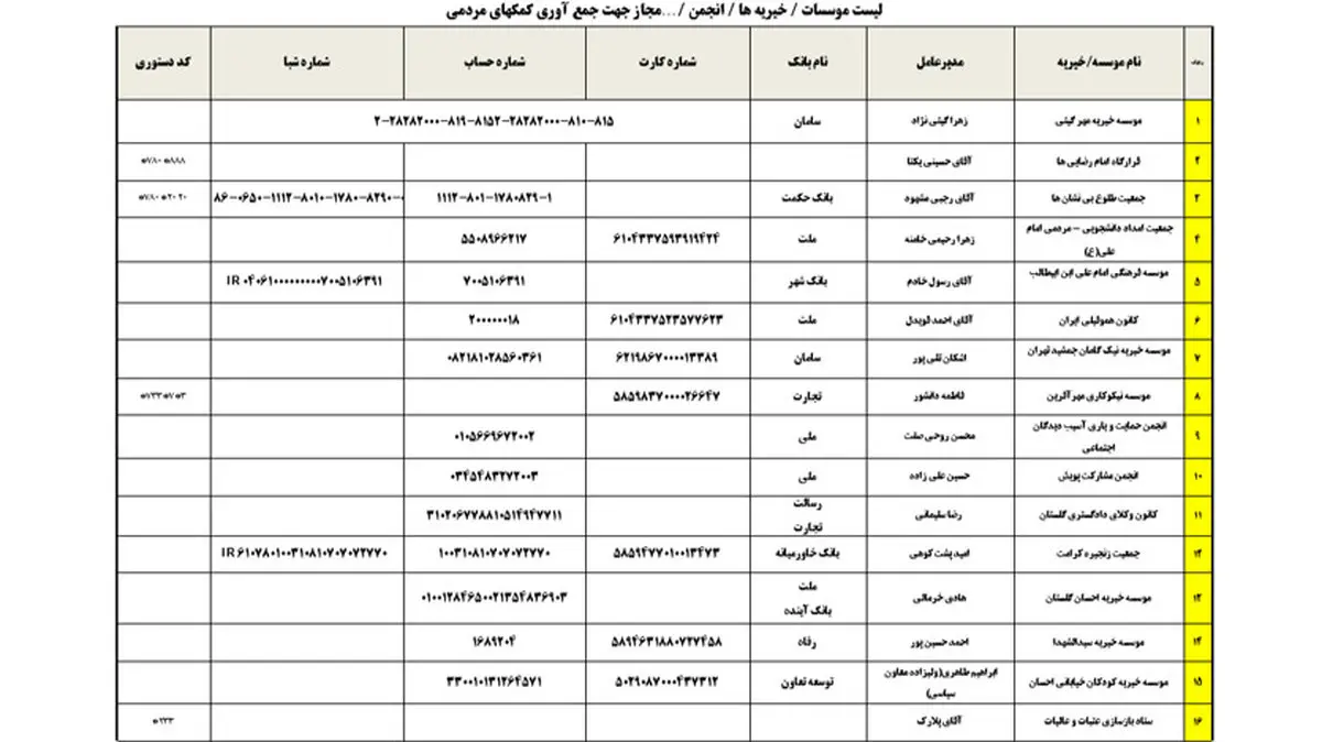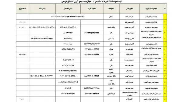 اعلام لیست موسسات خیریه و انجمنهای دارای مجوز برای جمعآوری کمکهای مردمی و فعالیت در مناطق سیلزده