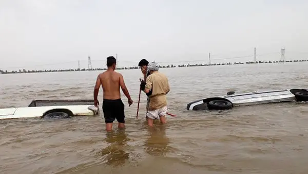 تصاویری از غرق شدن جاده و چند خودرو در اثر بالا آمدن آب در جاده اهواز به شادگان را مشاهده می کنید.برای ورود به کانال تلگرام ما کلیک کنید.