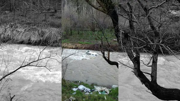 عکس امروز / پراید غرق شده در رودخانه جاده چالوس