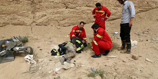 سقوط جوان موتورسوار در گودال کورههای آجرپزی قم