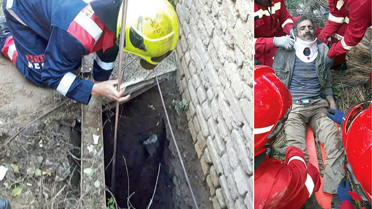 طولی نکشید که قرمزپوشان آتش نشانی همه محوطه زمین خاکی را قرق کردند، تجهیزات لازم با رعایت نکات ایمنی، روی دهانه چاه قرار گرفت و برخی از امدادگران درحالی که کمربندهای محکمی را به کمر بسته بودند قدم به دل تاریک چاه گذاشتند. نورافکن ها روشن شد و امدادگران با دیدن مردی که در دل چاه 15 متری افتاده بود به یاری وی شتافتند.
