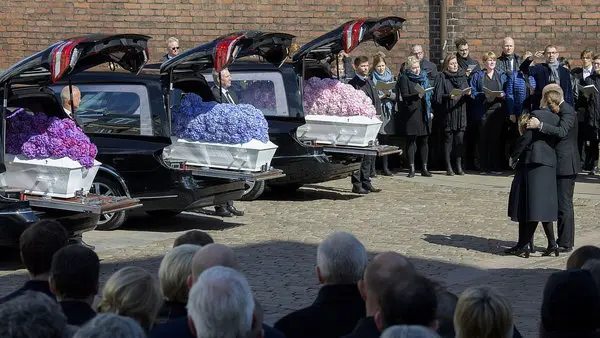 به گزارش گروه ترجمه رکنا، مراسم خاکسپاری سه تن از فرزندان اناس هولش پاولسن، ثروتمندترین شهروند دانمارک که سه فرزندش را در جریان بمبگذاری های سریلانکا از دست داده بود برگزار شد.