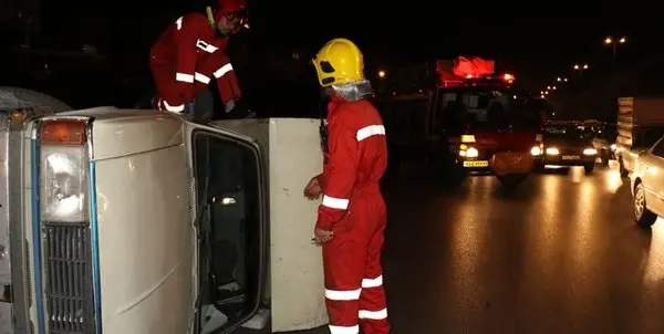 واژگونی پیکان وانت در مشهد راننده جوان را راهی بیمارستان کرد + عکس