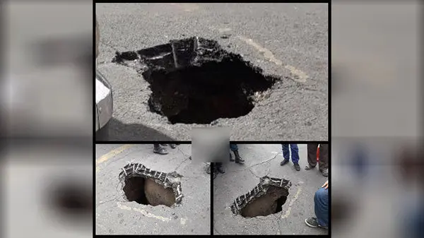 وحشت در وسط میدان مقدم فلاح تهران / زمین دهان باز کرد!+عکس