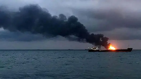 نخستین عکس از منفجر شدن ناو آذربایجان در دریای خزر