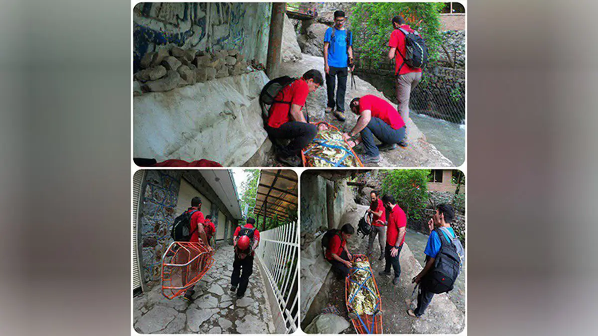 حوادث رکنا: جوان کوهنوردآسیب دیده توسط نیروهای هلال احمر به پایین کوه دربند منتقل شد.