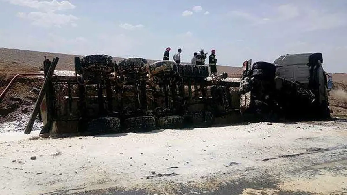 واژگونی تریلر نفت کش در میبد یک کشته و یک زخمی برجا گذاشت+عکس