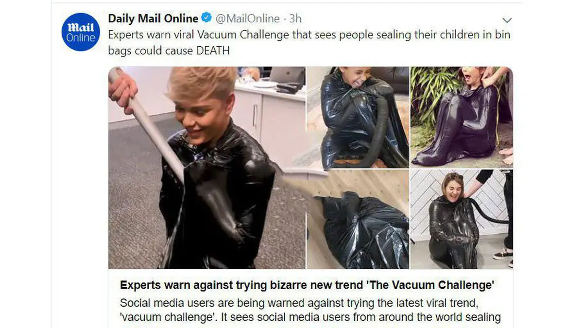 به گزارش گروه ترجمه رکنا، به تازگی چالش جدیدی در بین مردم رواج یافته که آن را چالش جاروبرقی نامیده اند که ممکن است سبب مرگ بچهها شود.