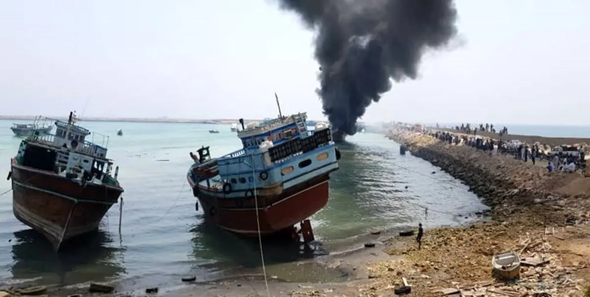 آتش سوزی در اسکله بندر بوالخیر دلوار مهار شد