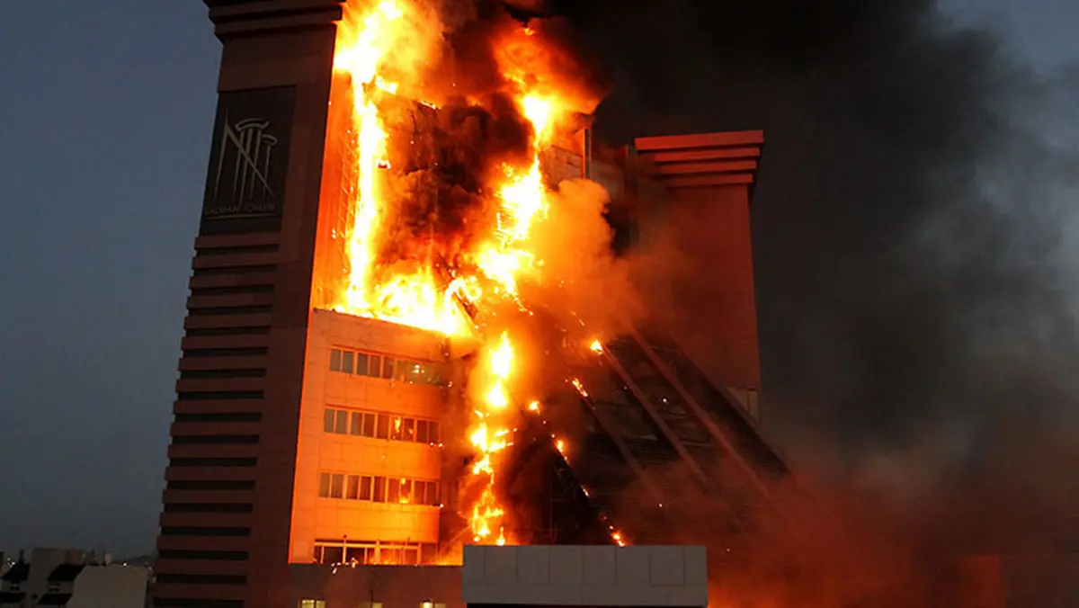 رکنا: ﻋﺼﺮ ﺑﻴﺴﺘﻢ ﺗﻴﺮﻣﺎﻩ 25 بود که خبر ﺁﺗﺶ ﺳﻮﺯﻯ ﺑﺮﺝ ﺳﻠﻤﺎﻥ، ﻣﺸــﻬﺪ ﺭﺍ ﭘﺮ ﻛﺮﺩ. ﺛﺎﻧﻴﻪ ﻫﺎ ﺑﻪ ﺳــﺮﻋﺖ ﺳﭙﺮﻯ ﻣﻰ ﺷــﺪﻧﺪ ﻭ ﺣﺠﻢ ﺁﺗﺶ ﺳــﻮﺯﻯ ﺍﻳﻦ ﺑﺮﺝ ﺗﺠﺎﺭﻯ ﻫﻢ ﺭﻭ ﺑﻪ ﺍﻓﺰﺍﻳﺶ ﺑﻮﺩ ﺗﺎ ﺟﺎﻳــﻰ ﻛــﻪ ﺍﺯ ﺷــﻌﺎﻉ ﭼﻨﺪ ﻛﻴﻠﻮﻣﺘﺮﻯ ﺍﻃﺮﺍﻑ ﺁﻥ ﺑﻪ ﺭﺍﺣﺘﻰ ﻧﻮﺭ ﻧﺎﺷﻰ ﺍﺯ ﺍﻳﻦ ﺣﺮﻳــﻖ ﻣﻬﻴﺐ ﻭ ﺩﻭﺩﺵ ﺩﻳﺪﻩ ﻣﻰ ﺷﺪ.