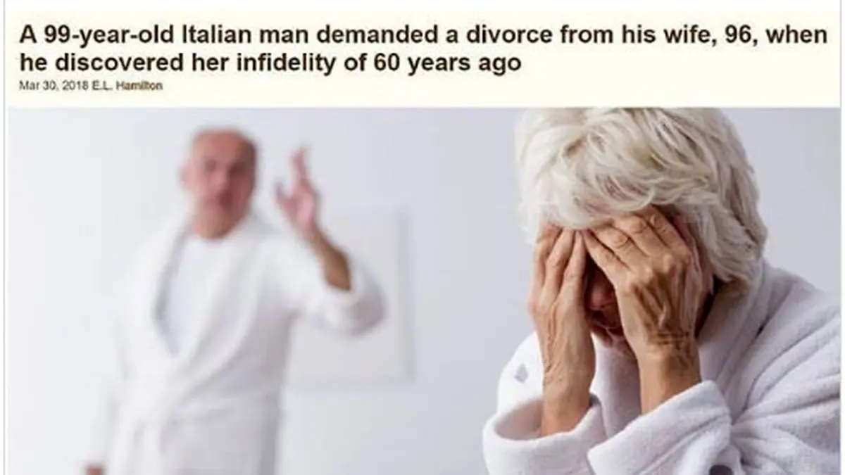 مرد 99 ساله ایتالیایی بعد از دیدن نامه ی 60 سال پیش همسر 96 ساله اش به عشق قدیمی اش، او را بعد از 77 سال زندگی مشترک طلاق داد.
