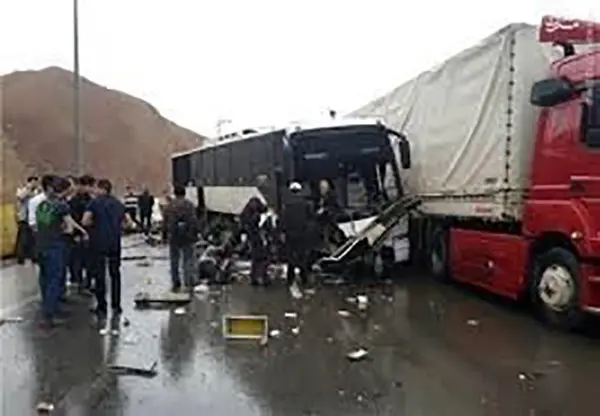 16مصدوم در تصادف اتوبوس با کامیون در کاشان +عکس