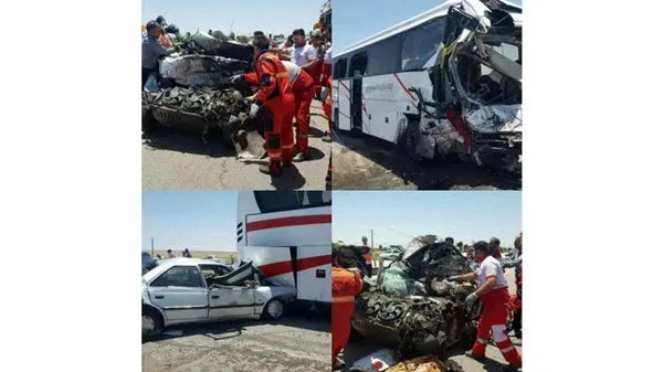فاجعه در قزوین / برخورد 2 اتوبوس با 15 خودرو 42 قربانی بر جای گذاشت+ تصاویر هولناک