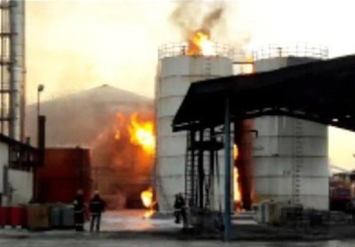 آخرین وضعیت انفجار یکی از مخازن کارخانه مشتقات نفتی کرمانشاه + عکس