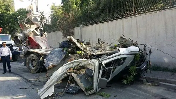رکنا: برخورد بونکر حامل بتن با چهار دستگاه خودرو، حادثه ای تلخ در منطقه یک تهران آفرید.