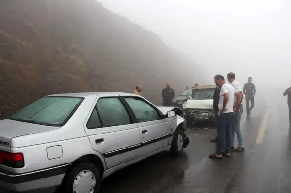 جاده مهآلود خلخال - پونل حادثه آفرید/ تصادف زنجیره ای 5 خودرو