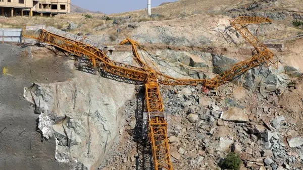 سقوط جرثقیل تاور کرین در یک کارگاه ساختمانی در مشهد + عکس