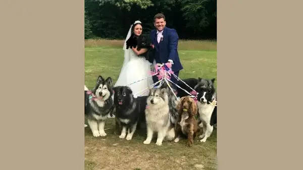 رکنا ازدواج عجیب زوج انگلیسی در کنار ۶ سگشان توجه بسیاری از رسانهها را به خود جلب کرد.