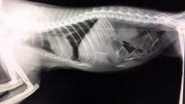 به همین دلیل به یک بیمارستان منتقل شد و متاسفانه نتایج سی تی اسکن، کمی هولناک و شوکه کننده بود! پزشکان در بدن او 31 سوزن کشف کردند و محققان بر این باور هستند که این سوزن ها توسط یک دستگاه به بدن او فرو رفته اند و قسمت بالای سوزن ها بصورت کامل بریده شده بودند.