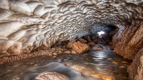 این غار شبیه تنگهای بزرگ و یک انبار پربرف است که ارتفاع برفهای آن تا ۵۰ متر نیز میرسد.