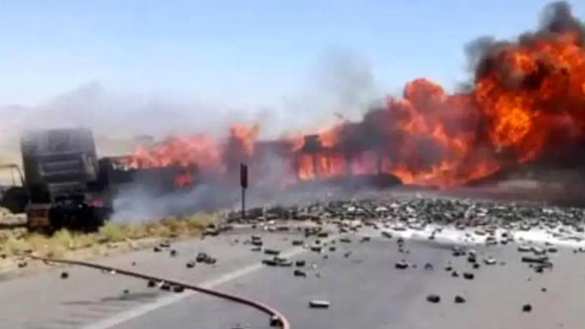 کامیون حامل چسب در یزد آتش گرفت+ عکس
