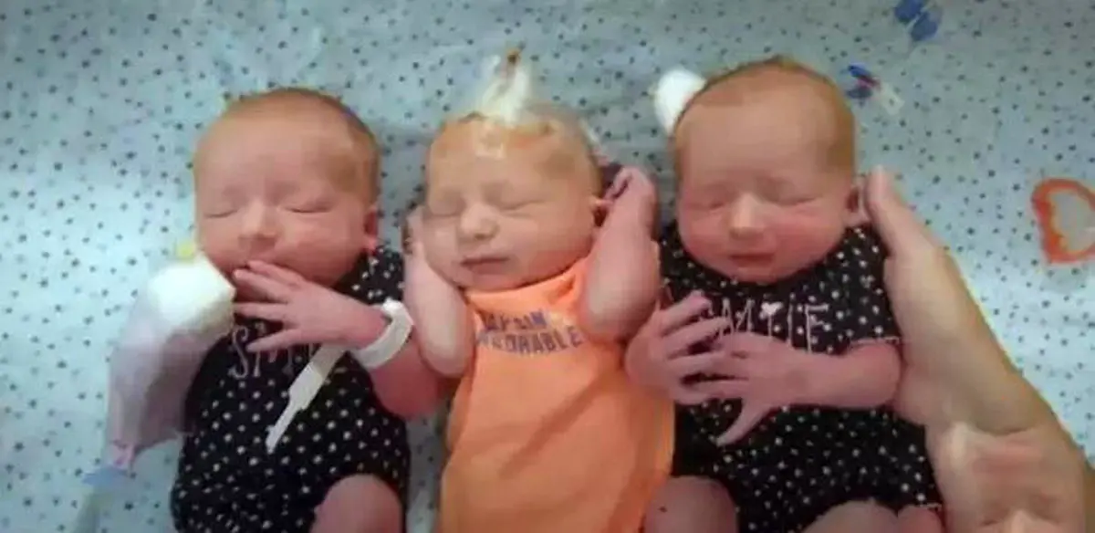 این زن همراه با همسرش برای درمان درد کلیه به بیمارستان مراجه کرده بود. اما زمانی که آزمایش داد متوجه شد قرار است سه عضو جدید به خانواده اش اضافه شود.