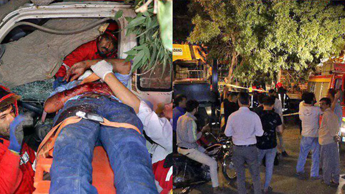 محبوس شدن راننده کامیونت در لابلای یک درخت تنومند در مشهد
