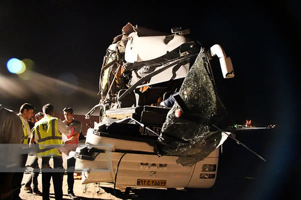 راننده اتوبوس زائران امام رضا(ع) به کامیون کوبید و کشته شد + عکس